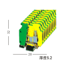 小型接地端子MBK3/E-Z-PE 小型接地端子带通用安装脚,可分别安装到 NS15 小型安装轨上,按国际标准采用黄绿双色,由于接地导线与安装轨相连,可节省时间和空间,直接将安装轨作为总线。